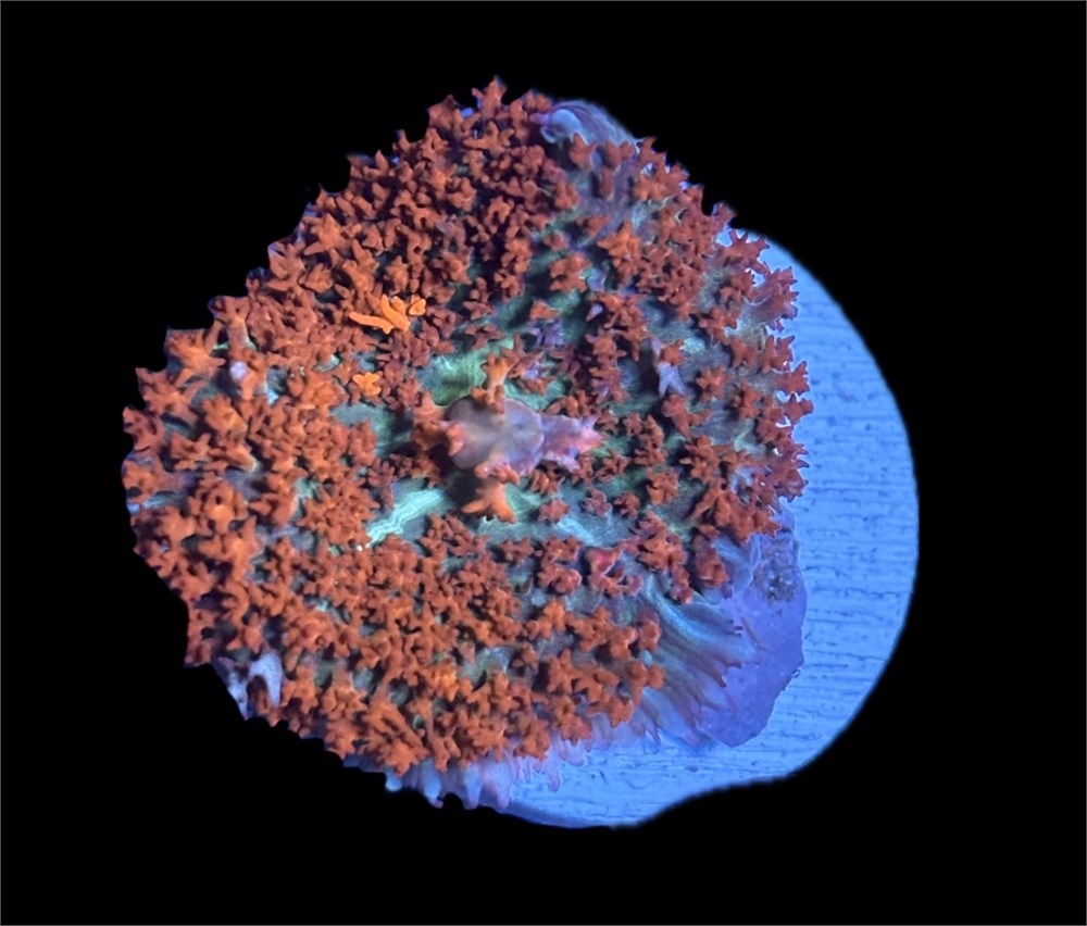 WOW! This hard to find mushroom is known for its unique red polyps that give tons of movement! This Saint Thomas Mushroom has a teal/green base with perfect red accents!