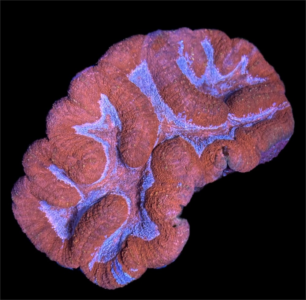 UNIQUE! With a pinkish/red rim and a grafted purple and baby blue center, this lobo has a color combo we haven't seen before! Lobophyllia will benefit from weekly feedings but is not required!