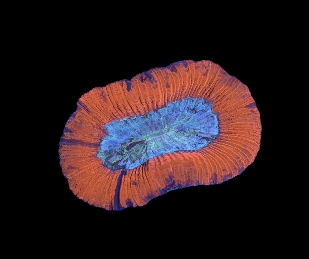 BRIGHT red and purple rim with a baby blue splatter center! Trachyphyllia will benefit from weekly feedings but is not required.