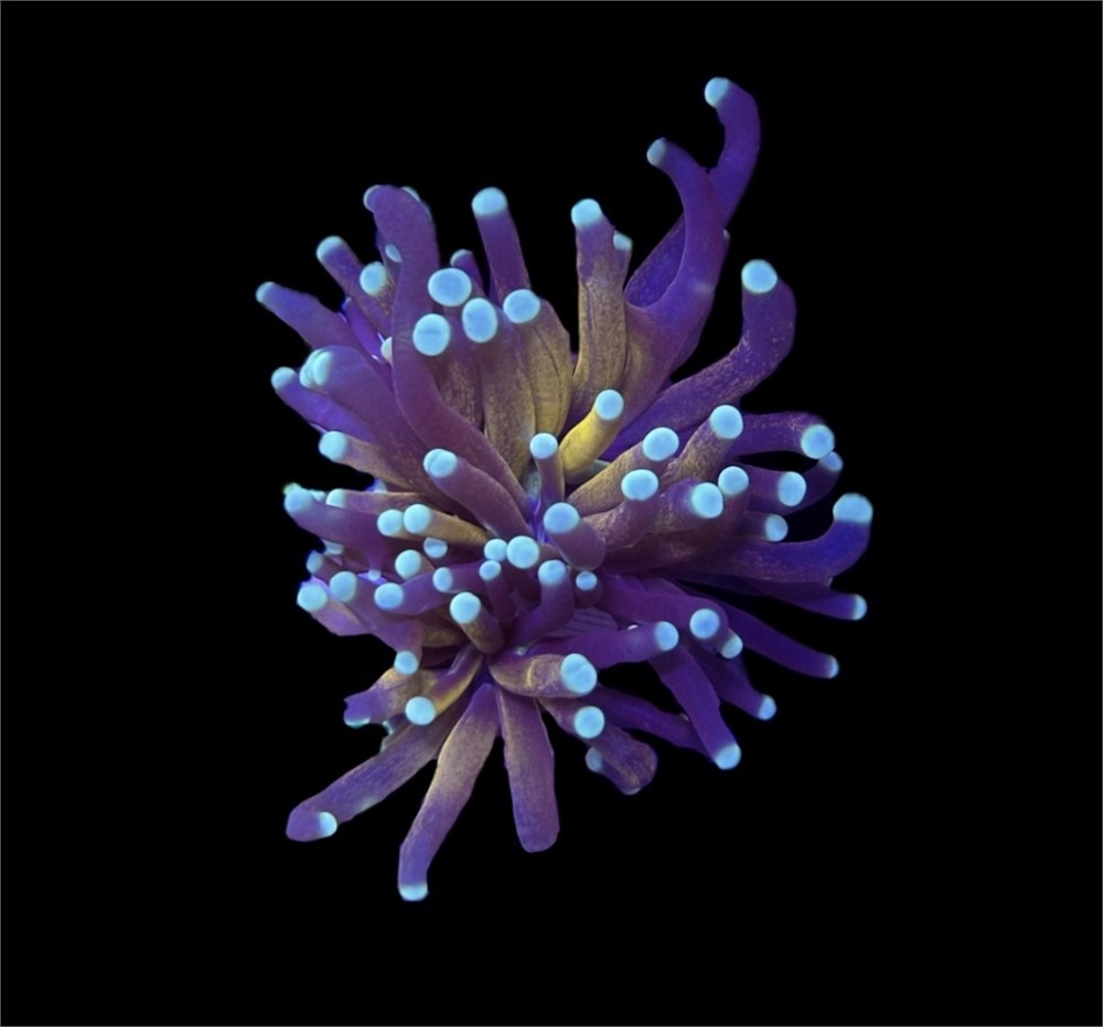 RARE! Harder to find than most holy grail torches, the tiger torch is an amazing coral in the euphyllia family and has a blueish/green tint that fades to a grafted, bright gold base and blue tips! Tiger torches require stable water and are more sensitive than other torch corals. YES! you read the description right, this is a FULLY aquacultured tiger torch head. Which makes this torch hardier than wild caught AND much more rare as finding tank grown Tigers is like finding a needle in a hay stack.